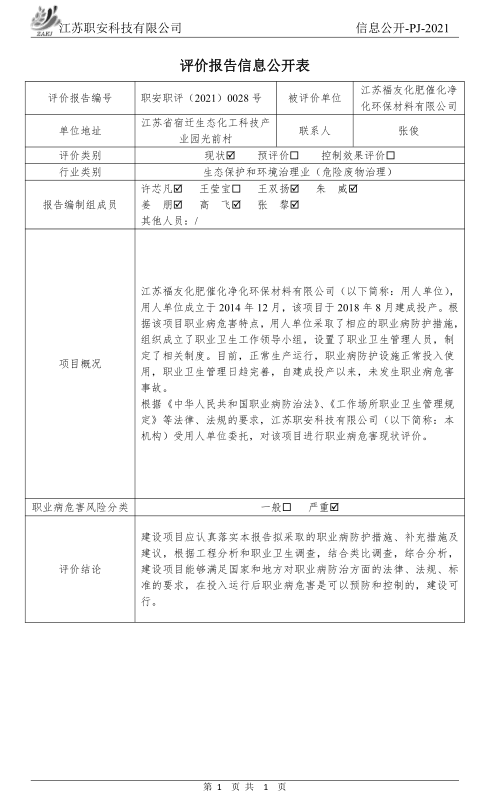 江苏职安科技有限公司职业病危害现状评价报告服务流程