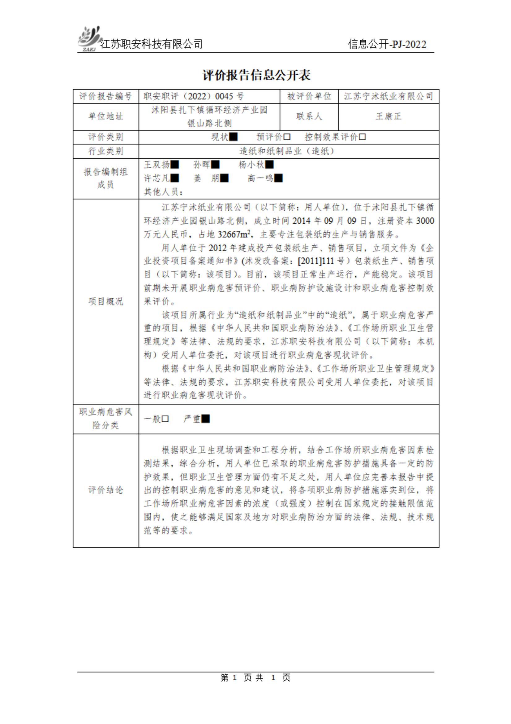 职安职评(2022)0045号