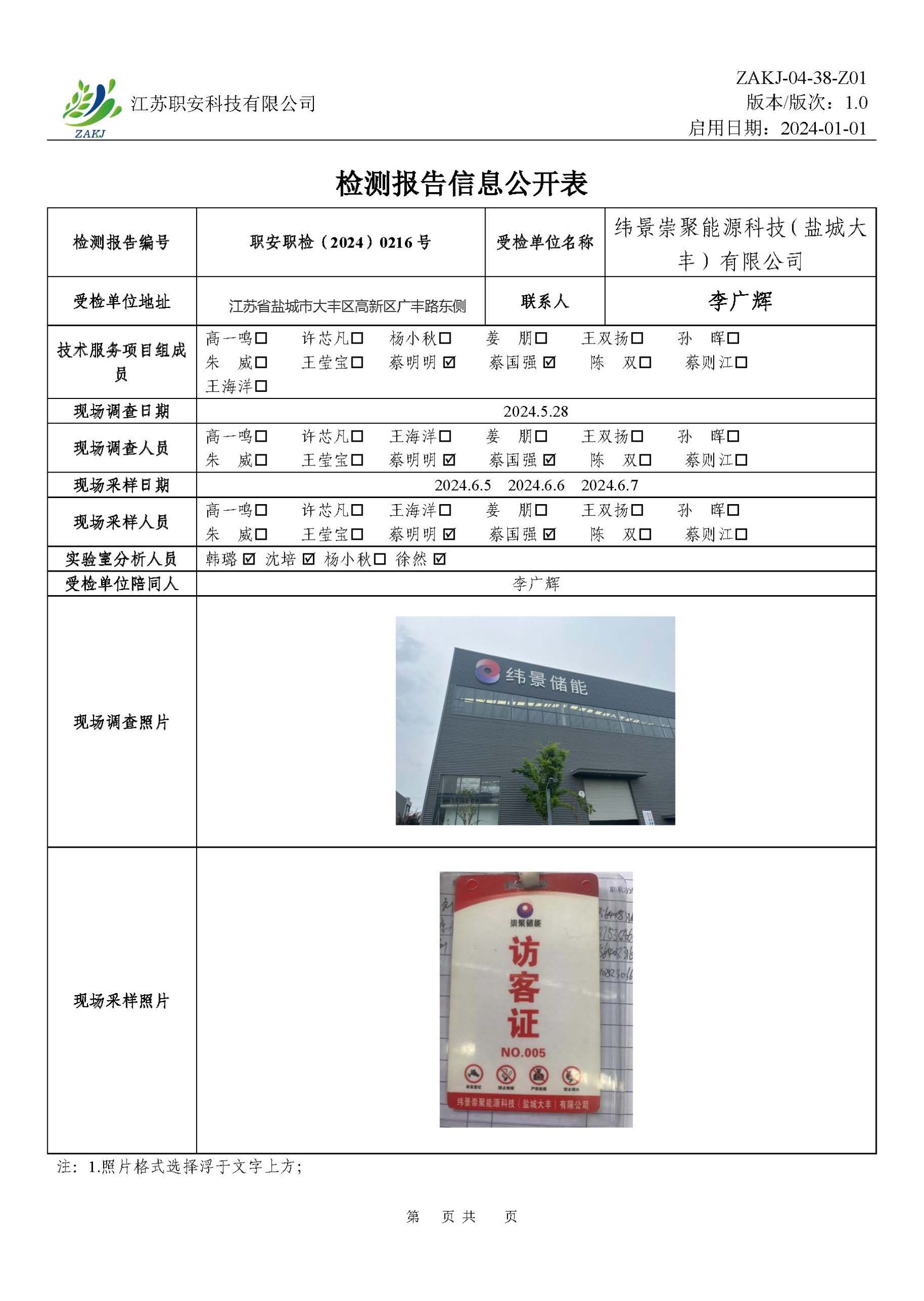 检测报告公示